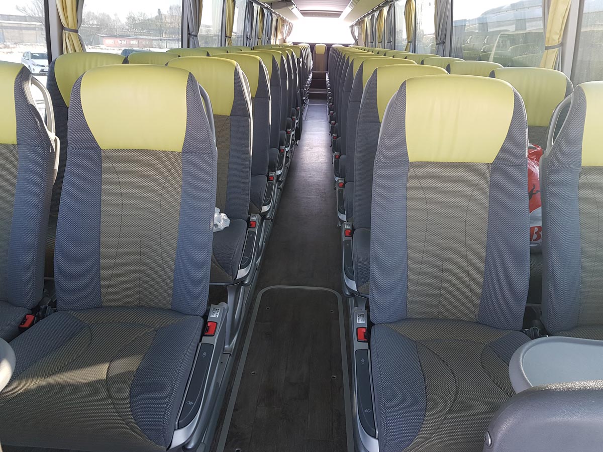 Wyposażone w najnowocześniejsze systemy bezpieczeństwa ( nim. ESP, ABA, ABS, ASR.), GPS, Caffe bar, klimatyzacja, WC, lodówka, DVD, siedzenia rozkładane i rozsuwane na boki z pasami bezpieczeństwa, zapewniamy doświadczonych kierowców.